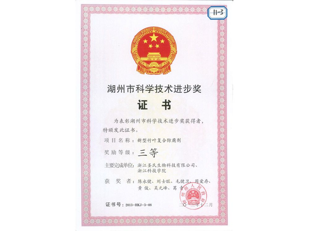 • 湖州市科學技術進步獎